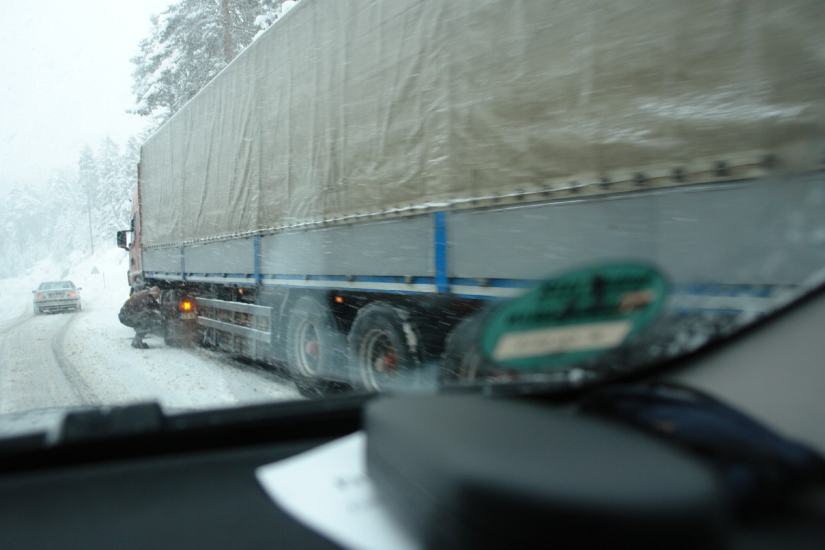 The trucks had to put on chains and the crews tried hard to keep the roads open but even Austrian know-how sometimes does not work. This is winter in the Alps!