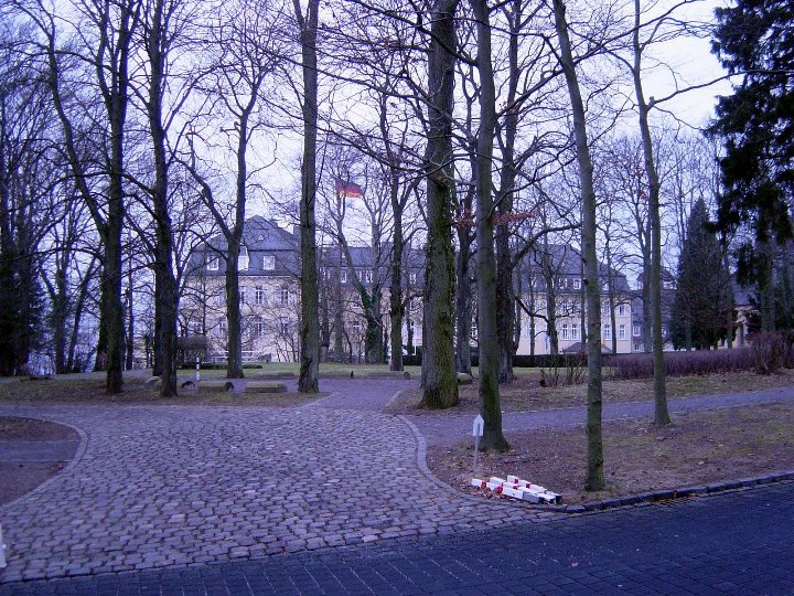 The "Gästehaus Petersberg" where we had our new year celebration - Sylvester. It used to be the official residence for government guests before reunification when Bonn was the capital of the Federal Republic of Germany [right above] and the view of the Rhein from our hotel room.[left above]