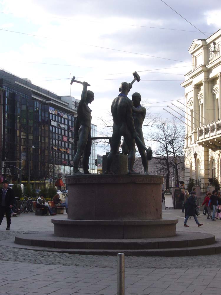Sundmans [left] and a monument celebrating the socialist past of Finland [right]. Finland still has these socialist values and they are used for the well being of her people.