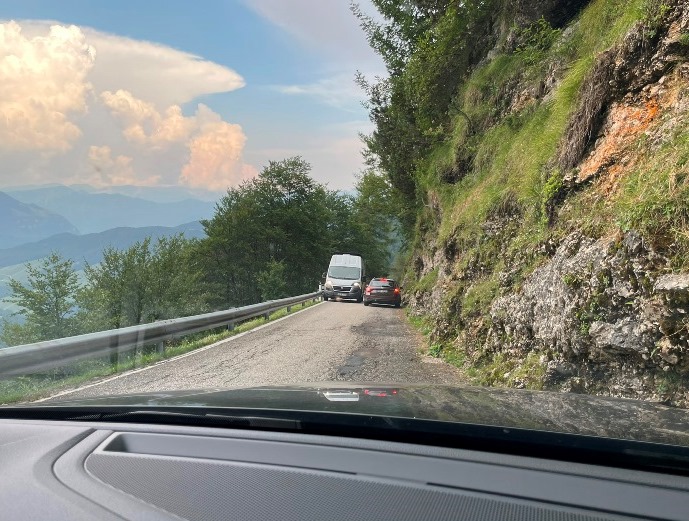 Lucky for us, there was a little nook we pulled in and waited for the van to pass.