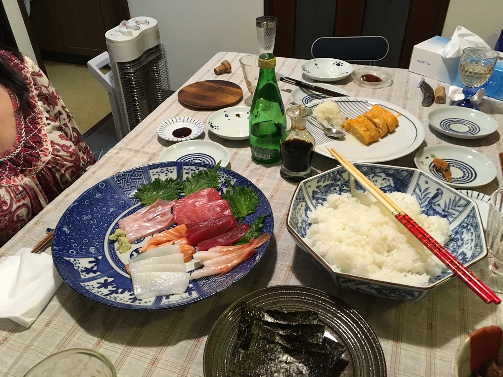 .... And in the evening Mari and Yoshiaki invited us to a lovely Japanese dinner, which was slightly westernized with some good champagne!! ... and where I learnt how to make an authentic sushi - Well, OK almost learnt...