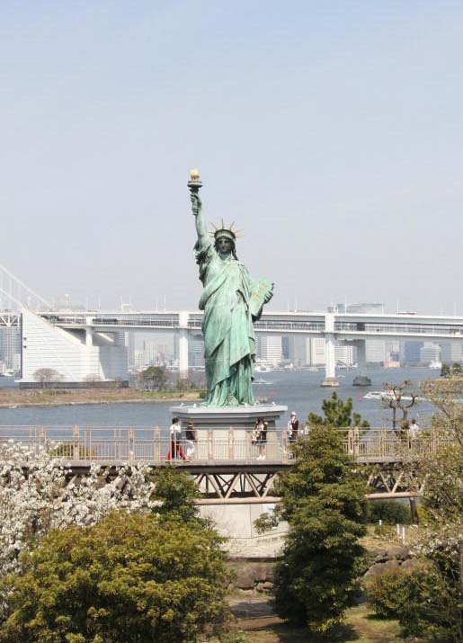 The artificial island of Odaiba: It is famous for the view of the Rainbow Bridge, the Fuji TV channel building and a replica of Lady Liberty