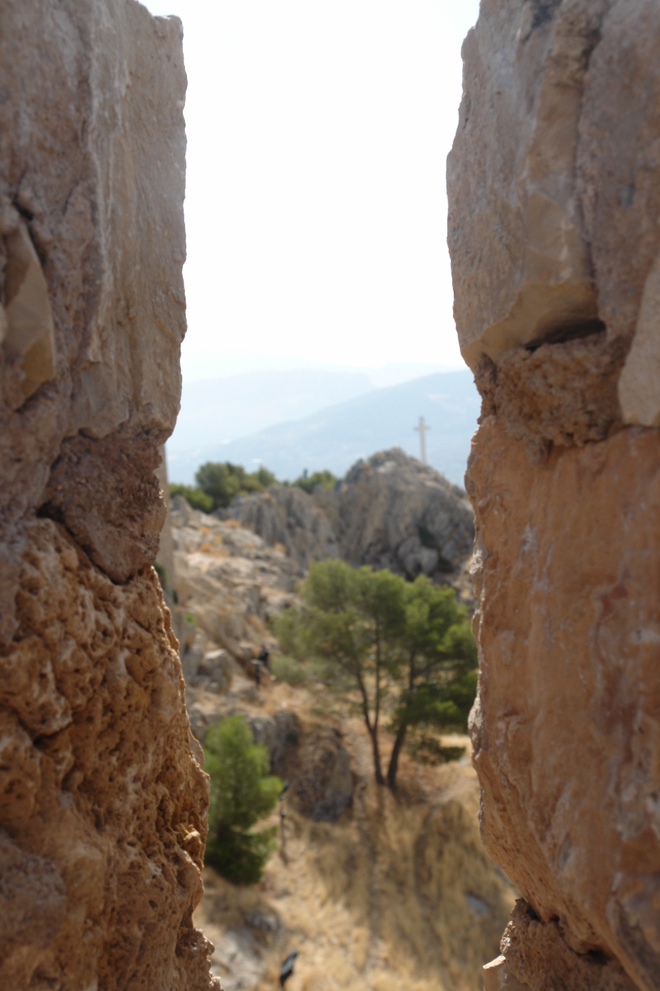 At the tip of the hill stands a giant cross overlooking the valley. |