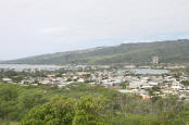 Louis Vuitton [above left] is situated right smack in the center of the resort and is open until late. The flowers [above right] were, some of the few, that are still in bloom. And below is Diamond Head from the Hilton.