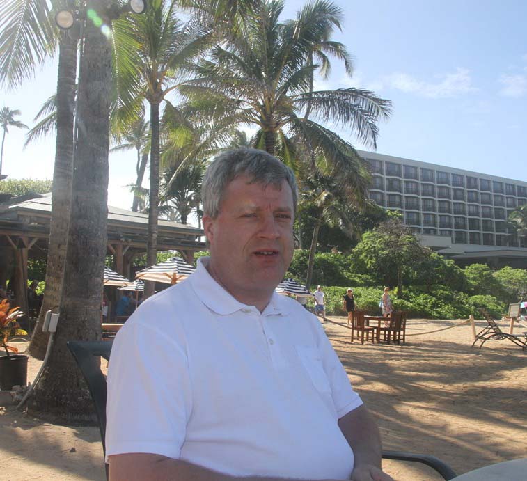 As this was an IETF [Internet Engineering Task Force] the attendees were given Hawaiian shirts. Many of the people wore them during the week. Stephan wore it for 5 minutes, in the room, to amuse me.
