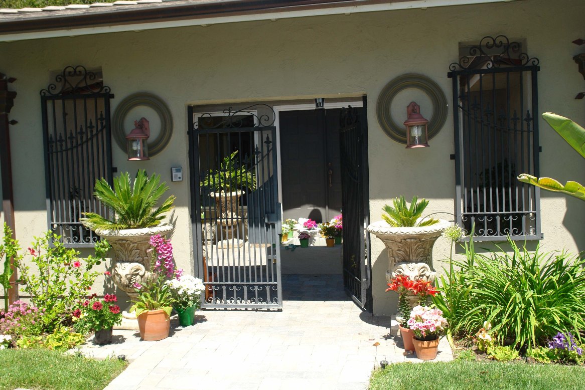 Our courtyard with the fountain and flowers. The rocks on top of the fountain came all the way from Armenia [left below]
