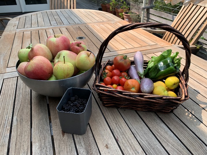 The crop was excellent this year. Tons of apples and blackberries and some grapes and strawberries.