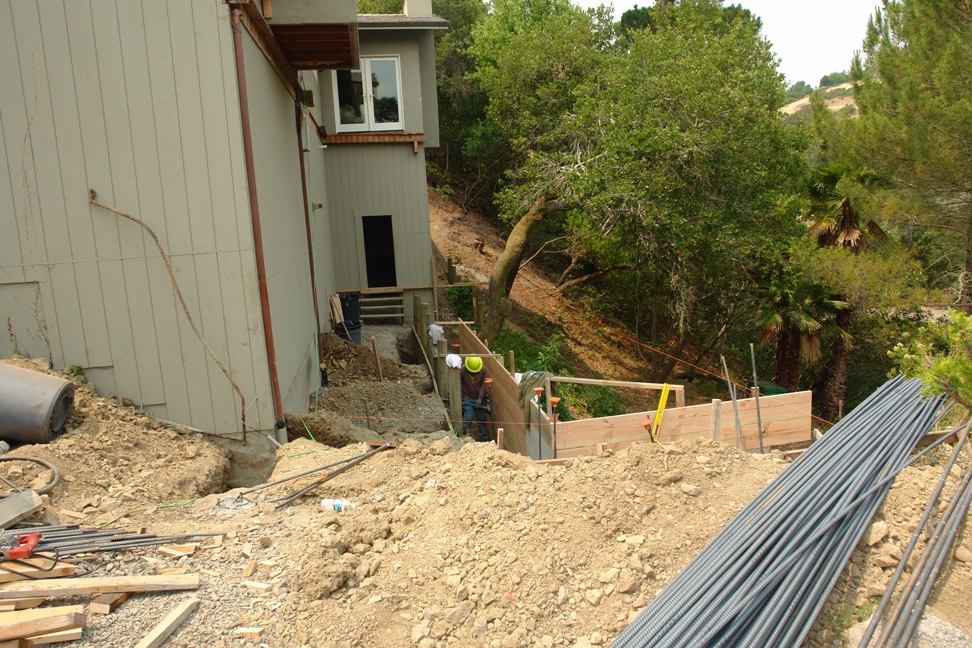 To create a flat planting environment Stephan had to build retaining walls and terraces.He purchased and delivered the wood in his 'truck"!