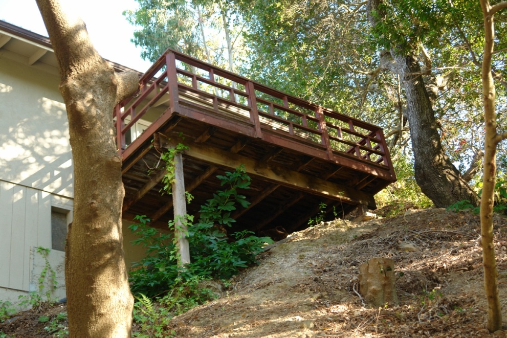 The old deck from the bedroom and the old staircase going to the back yard [below]