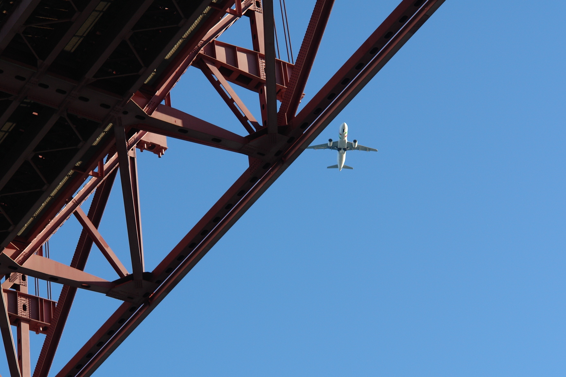 TAP flying over the bridge |